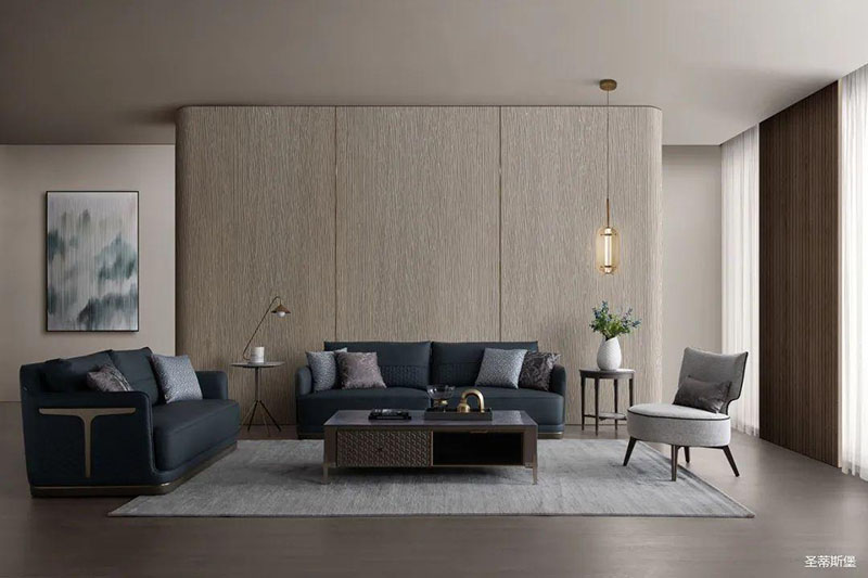 疏朗大氣的客廳空間,整體采用低明度的木紋色,在保留實木質(zhì)感同時,也為空間增添了一縷木香。沙發(fā)線條利落干凈,深邃而浪漫的配色仿佛將居者帶進了海洋世界。藝術(shù)編制皮料搭配金屬底座,時尚大氣質(zhì)感撲面而來,將理性和感性完美結(jié)合,提高了居家的時尚格調(diào)。