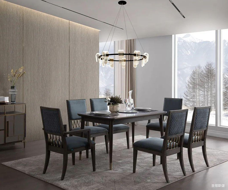 餐桌的天然材質(zhì)經(jīng)過時間的沉淀,散發(fā)著生生不息的自然生命力,它的紋理與質(zhì)感展現(xiàn)著尊貴奢華的藝術(shù)氣息。“藝術(shù)的偉大意義,基于它能顯示人的真正感情,內(nèi)心生活的奧秘和熱情的世界。”而這款融合自然藝術(shù)與實木雕刻工藝的餐桌,不僅表達了羅曼·羅蘭對于生活與感情的理解,也讓你在居家生活中處處體驗到生活的真諦。