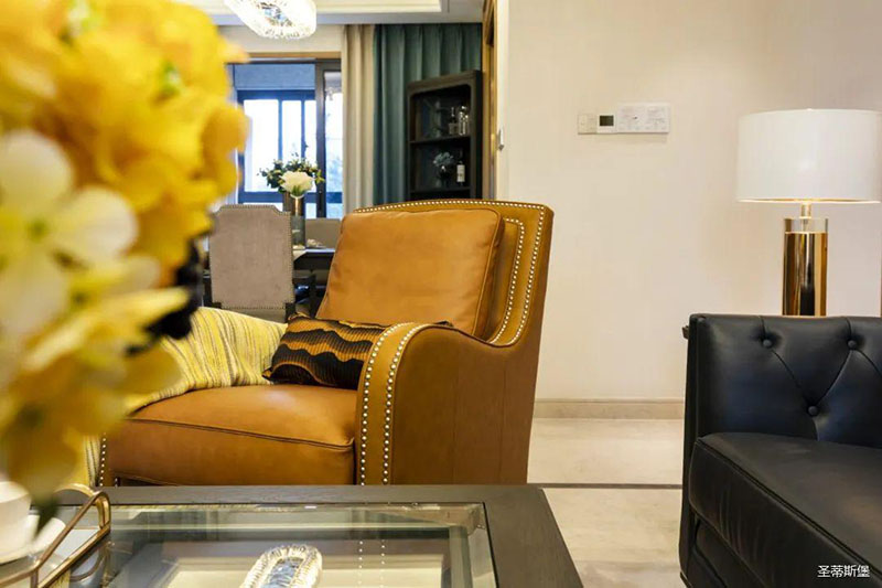 極具時(shí)尚設(shè)計(jì)格調(diào)的透明茶幾,不僅中和了沙發(fā)的厚重感,還令空間更為清透明亮!