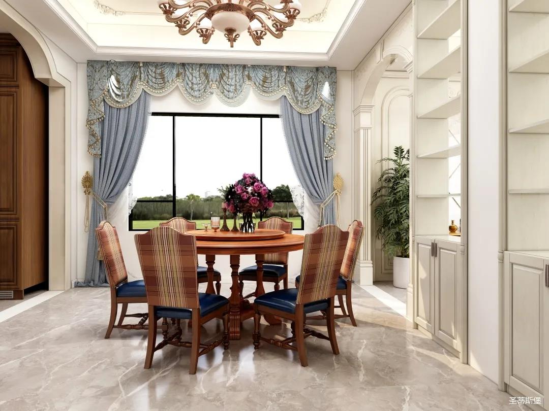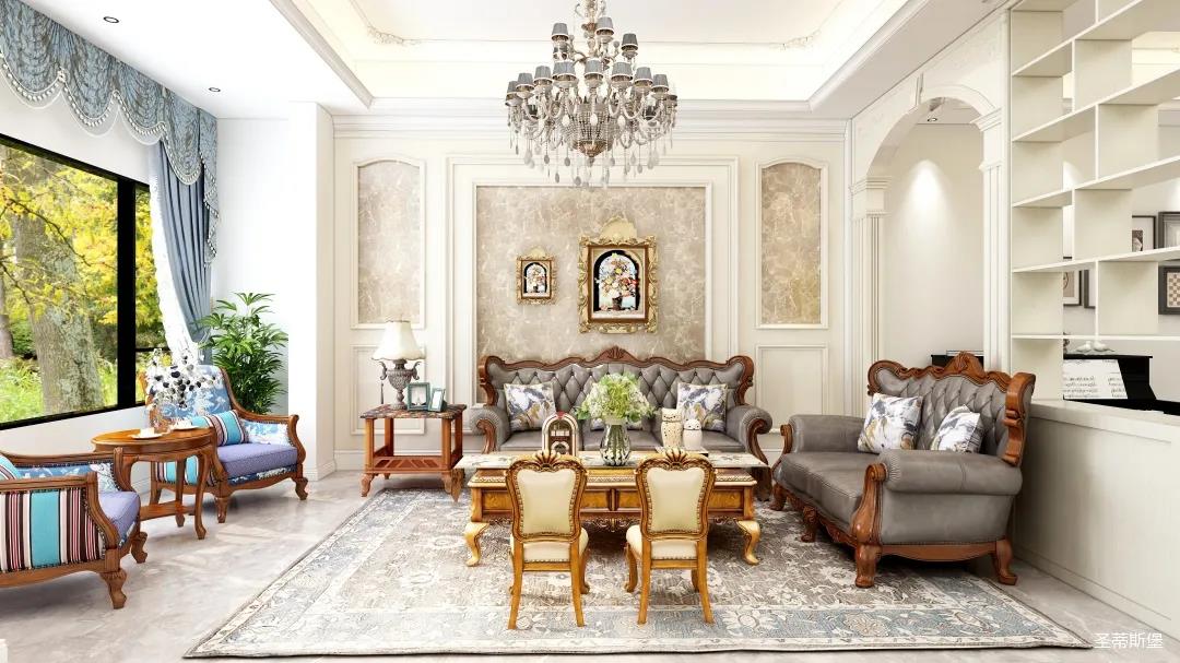 設計師將浪漫與莊嚴的氣質從空間細節凸顯,半圓形的拱門和轉角的石砌,盡顯雍容華貴。綠植擺設清新不落俗套,白色線條使入墻空間層次感更為強烈,實木與歐美裝飾搭配的拱門,挑高的大面窗客廳,都令人心神蕩漾。