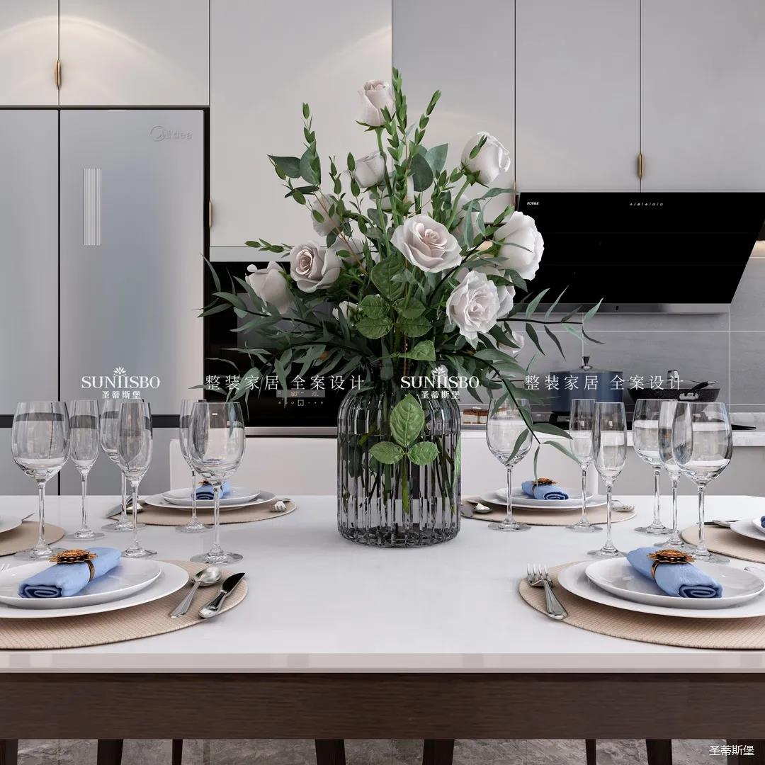 餐廚采用開放式布局,實現(xiàn)開闊明朗的公共空間,也提高了居家交流互動的便利性。減少不必要的物件,加上合理的設計,布局出和諧安全的居家環(huán)境。