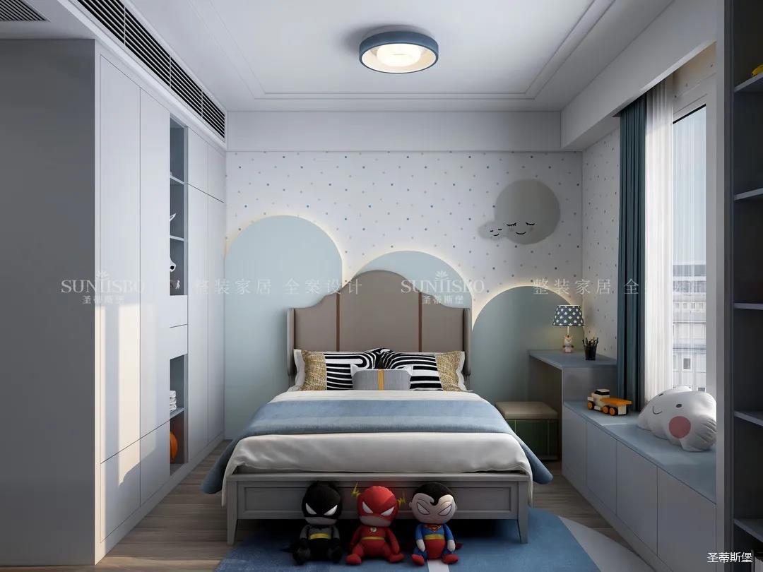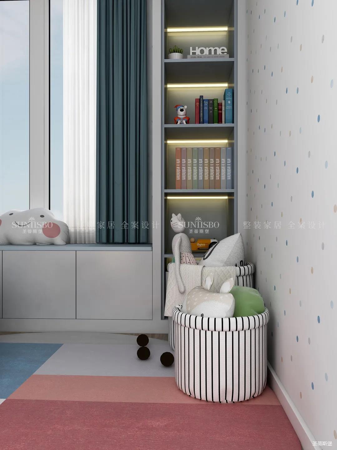 兒童房追求的是童真與自然,柜體的色彩與軟裝搭配完美呼應(yīng),云朵山峰的背景墻,以特立獨行的設(shè)計在視覺上讓心靈得到放空的意境。沿窗打造的飄窗格局,增加空間的功能性,造型簡約的柜體根據(jù)家裝理念摒棄了繁復(fù)的設(shè)計,更多展現(xiàn)的是空間自然之美。
