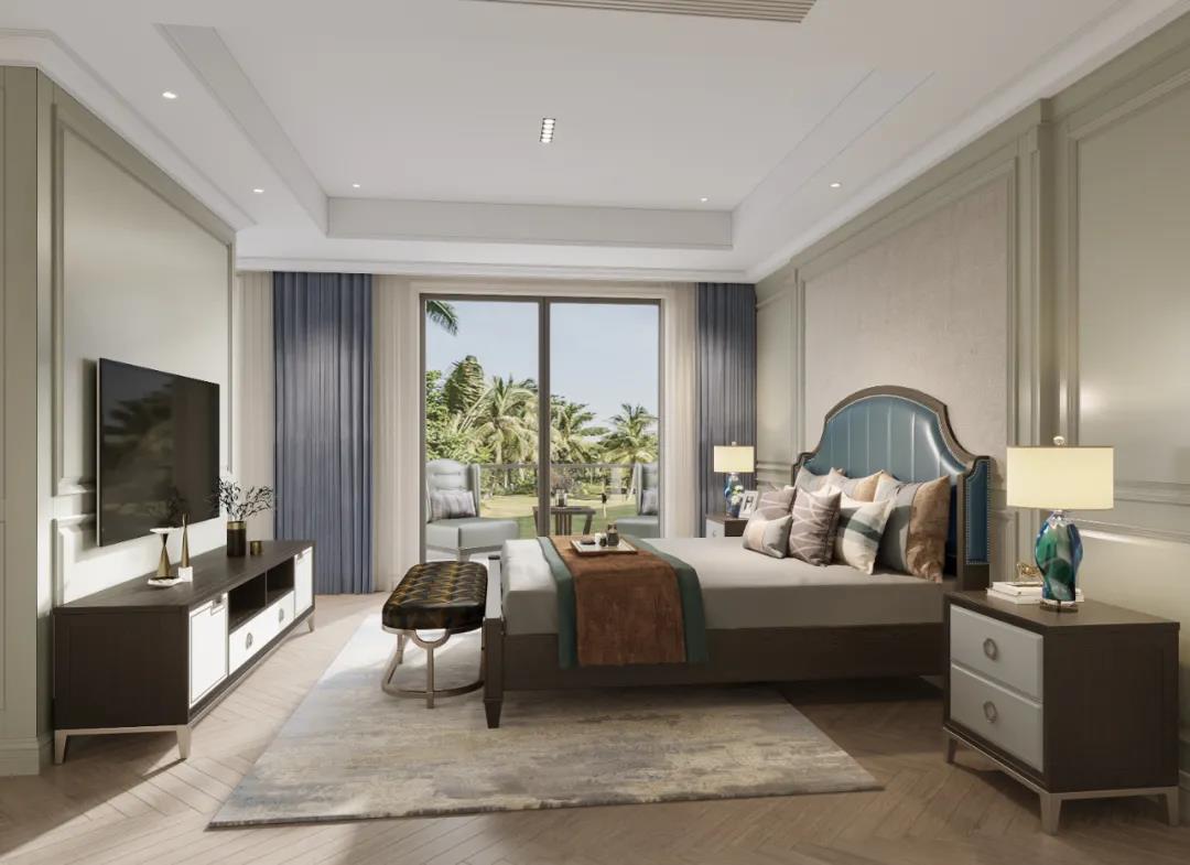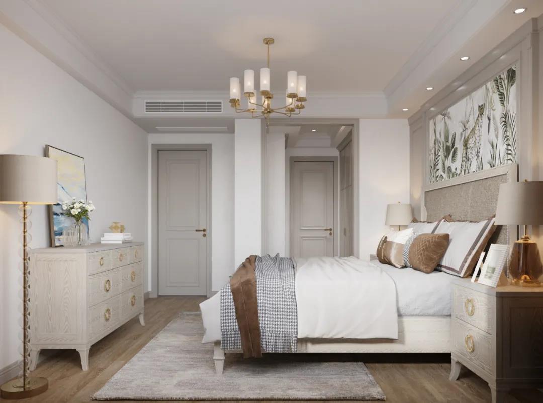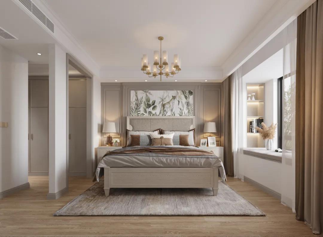 主臥以線條元素做主導(dǎo),軟包的床頭墻面充滿安全感,浮雕的造型給空間布局帶來了極佳的層次感,以現(xiàn)代美式輕奢框架為主題,融入了美式靈動(dòng)的線條,讓整個(gè)臥室既有時(shí)尚質(zhì)感,又有時(shí)光打磨后的穩(wěn)重。