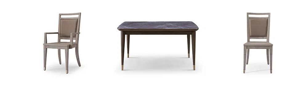 餐桌以簡(jiǎn)潔干練造型為主,高級(jí)百搭的灰色調(diào),軟包真皮,金屬鑲嵌的細(xì)節(jié),打造出悠閑奢華、優(yōu)雅精致的風(fēng)格,讓家的味道從一日三餐中抵達(dá)內(nèi)心深處。