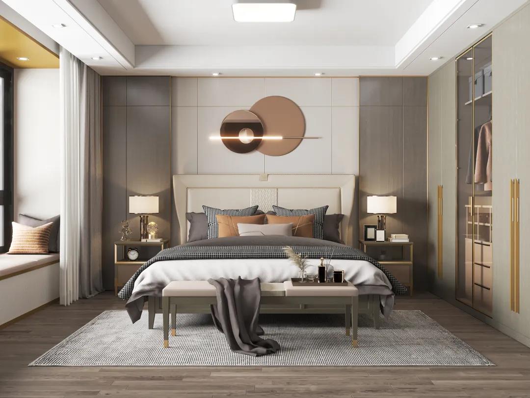 床屏?xí)r尚的霧霾藍(lán)色,與素雅的床品營(yíng)造出一種低調(diào)的簡(jiǎn)奢氛圍。金屬點(diǎn)綴著柜體拉手,床尾凳、床頭柜等微小細(xì)節(jié),讓生活充滿著內(nèi)在涵養(yǎng)與力量。