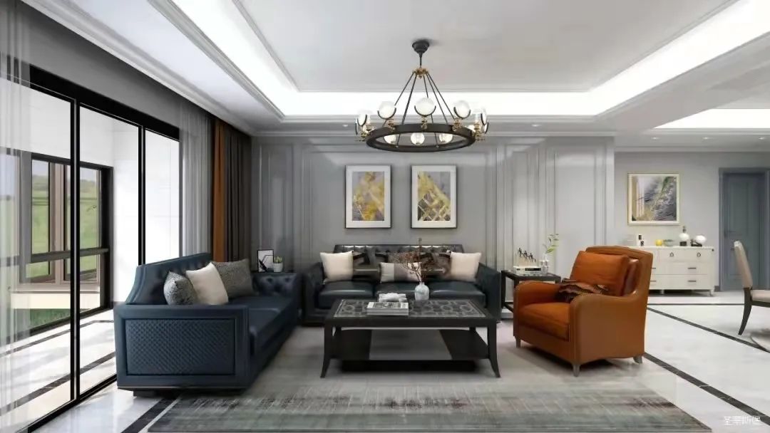 沙發(fā)皮色采用深淺不一的咖色拼接。讓空間顯得精致有質(zhì)感。在沙發(fā)的扶手邊框、底座,融入了愛馬仕橙,讓空間多了些靈動(dòng)的生活氣息。搭配簡約單椅,給人一種視覺上的高級(jí)感。